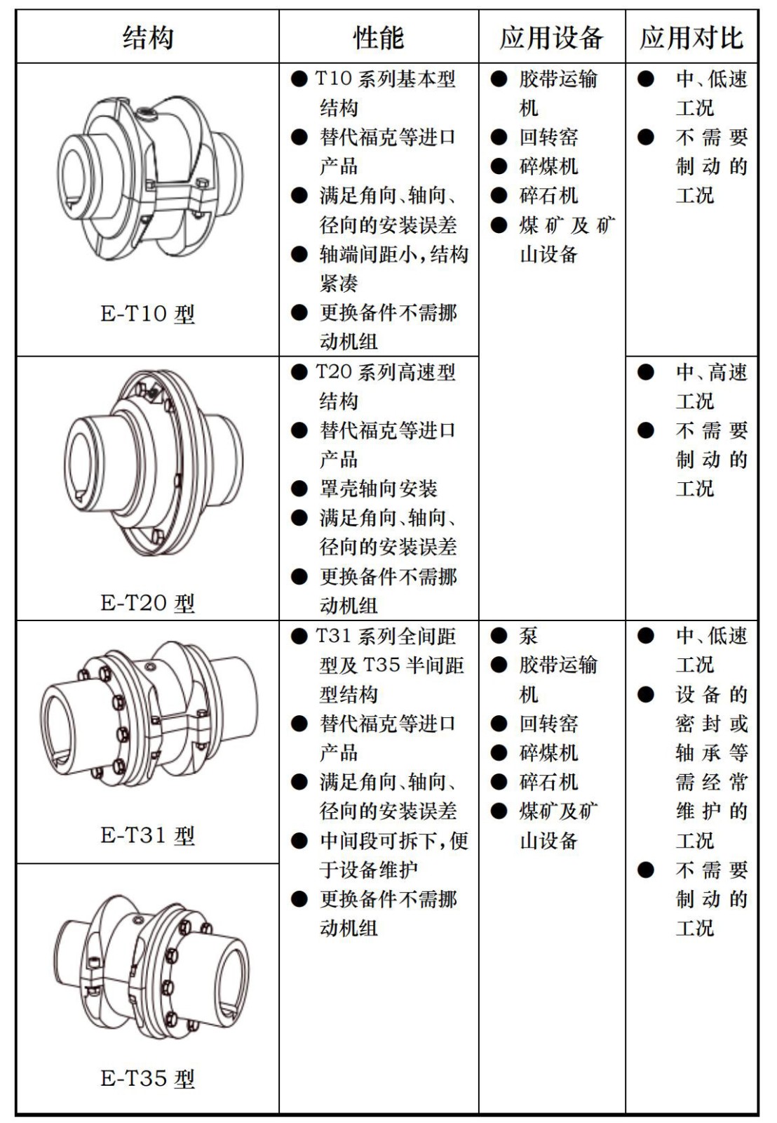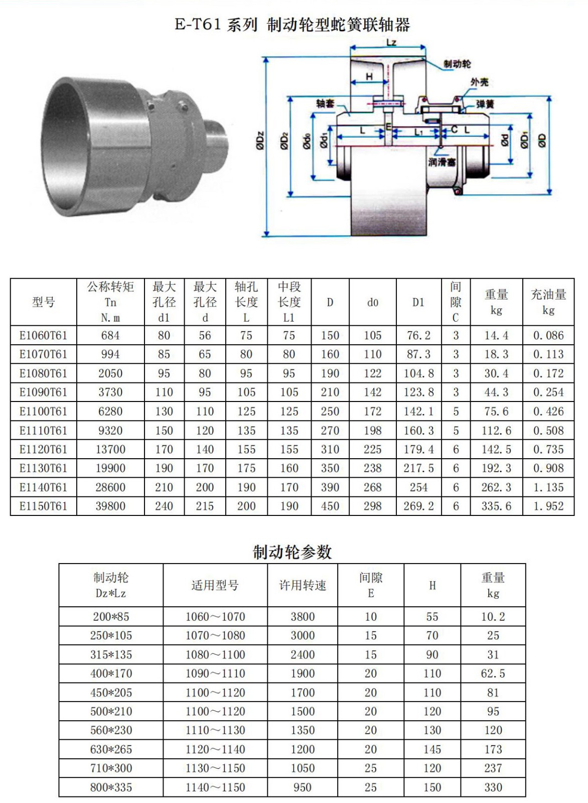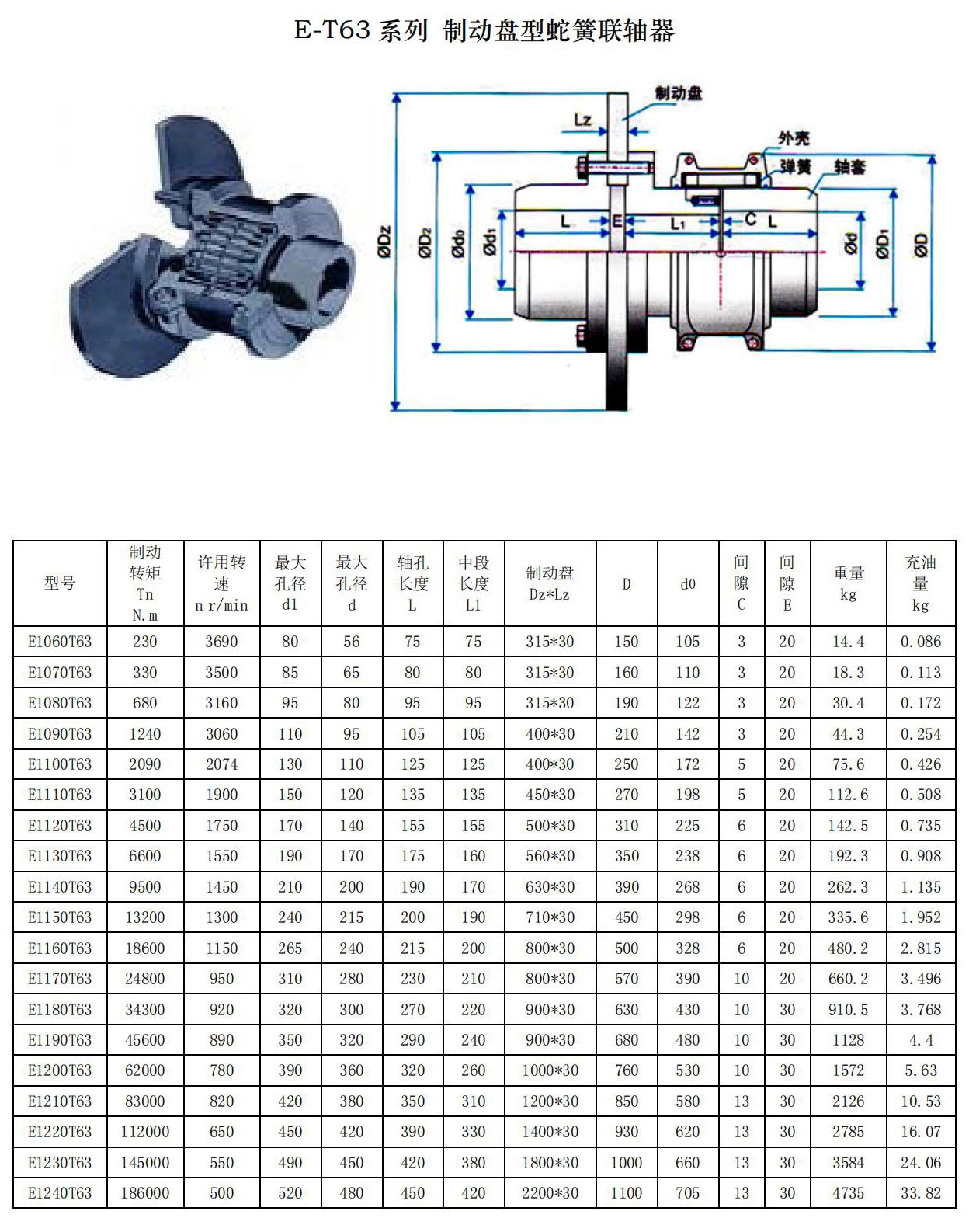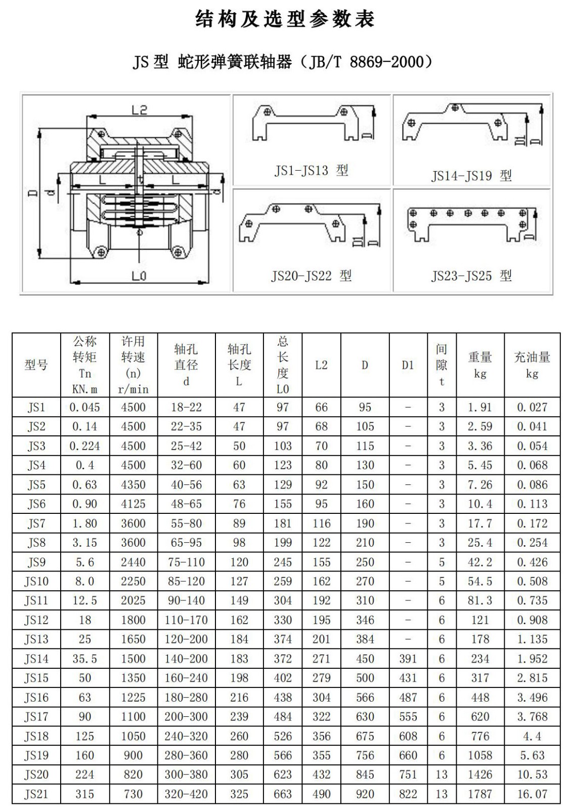蛇形弹簧联轴器是利用分为一组或几组的蛇形弹簧,嵌在两半联轴 器凸缘上的齿间内,以实现两半联轴器的联接,为防止蛇形弹簧在离心 力作用下甩出及避免蛇形弹簧与齿接触处发生干摩擦,需用封闭的壳体 罩住,并在里面注以润滑油或润滑脂。