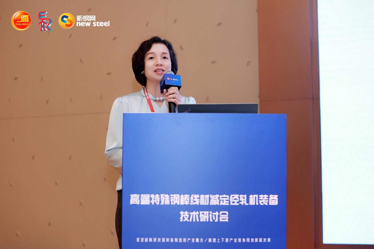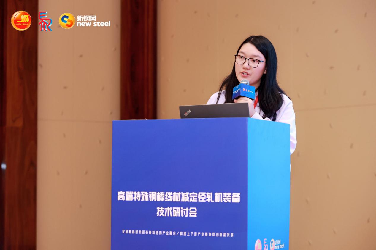 宝武集团马钢技术中心姜婷主任研究员作《高韧性冷作强化非调钢研发及应用》报告。